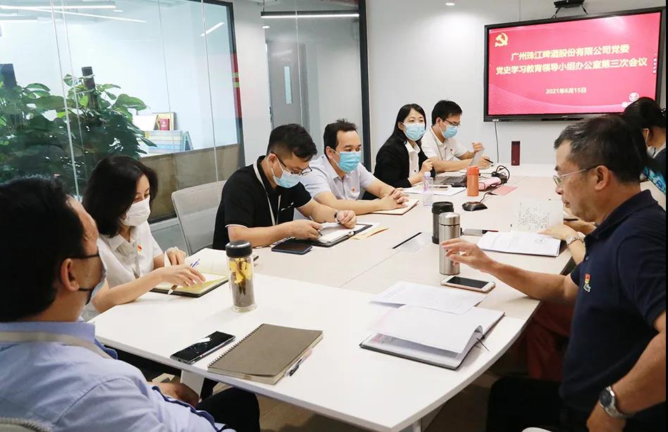 2021年6月15日,珠啤股份党委党史学习教育领导小组办公室召开会议,深化党史学习教育,推动巡回指导工作落实。珠啤股份党委副书记、工会主席吴家威,党委、纪委职能部门以及工会、团委等有关负责人参会。