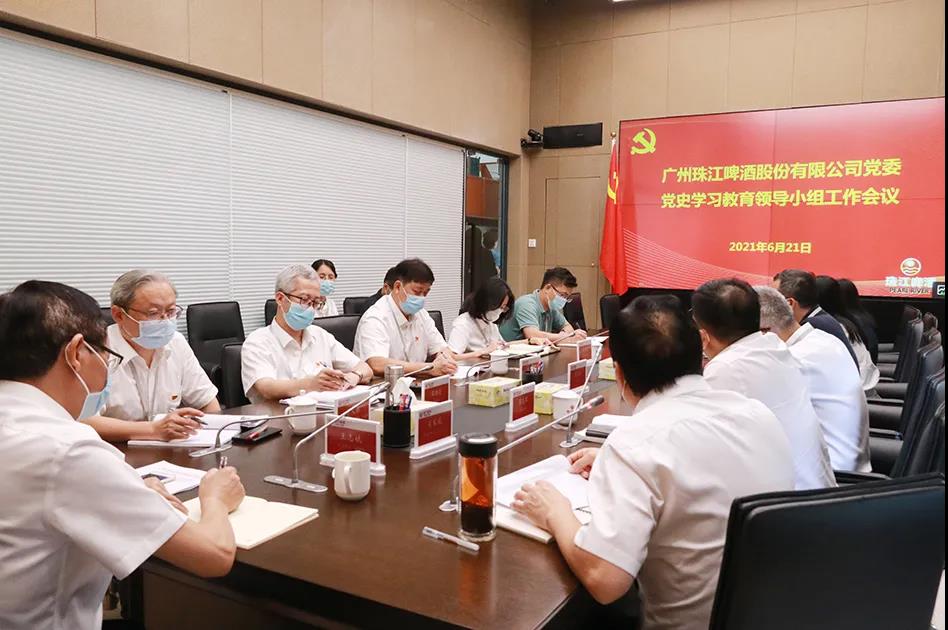 2021年6月21日,珠啤股份党委党史学习教育领导小组召开会议,传达市委关于党史学习教育的部署要求,听取公司党史学习教育情况汇报,推动巡回指导工作落实。珠啤股份党委书记、董事长王志斌出席并讲话,珠啤股份党委副书记、工会主席吴家威主持会议,党史学习教育领导小组成员,党委、纪委职能部门负责人参会。