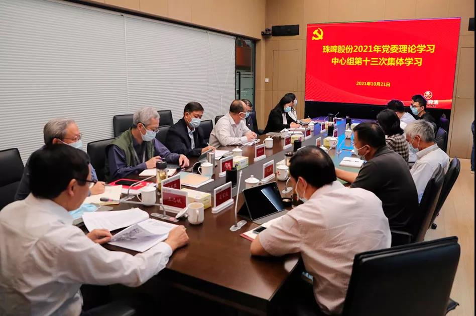 2021年10月21日,珠啤股份党委召开理论学习中心组(扩大)会议,专题学习研讨意识形态工作,珠啤股份党委书记、董事长王志斌主持会议。