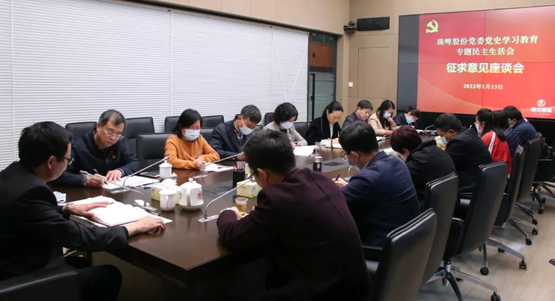 根据珠啤股份党委党史学习教育专题民主生活会有关安排,为扎实做好会前各项准备,确保民主生活会开出高质量、开出好效果,珠啤股份党委成立两个征求意见小组广泛征求各基层党组织党员、干部和群众的意见。2022年1月13日,珠啤股份党委书记、董事长王志斌分别带领两个征求意见小组在总部和南沙公司主持召开两场征求意见座谈会。