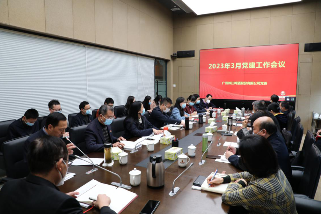 2023年3月30日,珠啤股份党委组织召开3月党建工作会。珠啤股份党委书记、董事长王志斌出席并讲话,珠啤股份党委副书记、工会主席吴家威主持会议,各党组织负责人、政工人员等50多人现场或视频参会。